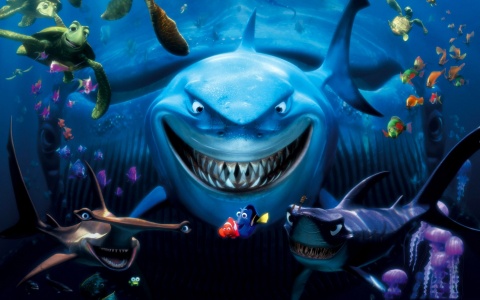 This Disney wallpaper is based on the 2003 Disney Pixar film, Finding Nemo. Here you will find the entire cast: Marlin, Dory, Nemo, gill, and more. The movie tells the tale about a father who goes on a quest to find his missing son. The timid clownfish, Marlin, joins up with forgetful, Dory, as they cross the ocean |